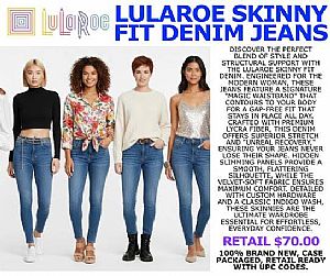 LuLaRoe Skinny Fit Denim Jeans Crafted with premium Lycra fiber, this denim offers superior stretch and "unreal recovery," ensuring your jeans never lose their shape. Hidden slimming panels provide a smooth, flattering silhouette, while the velvet-soft fabric ensures maximum comfort. Detailed with custom hardware and a classic indigo wash, these skinnies are the ultimate wardrobe essential for effortless, everyday confidence. Packaging: 100% brand new, retail-ready, with hang tags. XS (Size 24) 6,060 pairs S (Size 26) 39,494 pairs M (Size 28) 29,390 pairs L (Size 30) 19,654 pairs Quantity:94,598 units available Email id:Hajisalim@globalplayersintl.com +91 9819246785/Whatsapp Take All FOB USA NYC