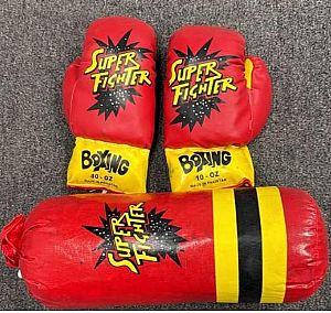 Kids’boxing gloves closeout pleased to offer a closeout on kids boxing gloves Each set comes with a pair of gloves and a boxing/punching bag Item dimensions 26” long, 9” wide Gloves size 10oz Case pack 12 Pallet holds 20 cases 4 pallets (about 80 cases) available UPC:842873018672 Quantity:960 Cost:Take all 4 pallets $14 each Email id:Hajisalim@globalplayersintl.com +91 9819246785/Whatsapp Take All FOB USA NYC